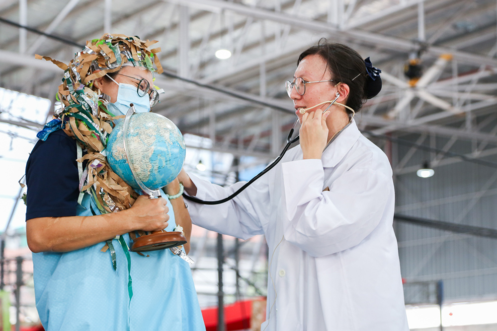 Roger Seen, the volunteer who conceived the stage play, said, “I hope to bring out the concept of environmental protection and vegetarianism through a light-hearted and interesting play.” To align with the theme of environmental protection, the costumes of all the actors were created from environmentally friendly recyclable materials.
