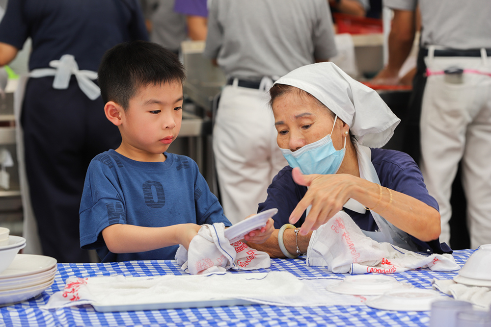 Gong Jian was thrilled to observe Tzu Chi's emphasis on environmental consciousness, particularly noting the reminder on the coupons to bring one’s lunch boxes and reusable bags for shopping and food packing, and felt that Tzu Chi has truly adopted the concept of environmental protection. So, on the day of the fair, she came to shop at the fair with her son and helper, bringing along their lunch boxes and cutlery.