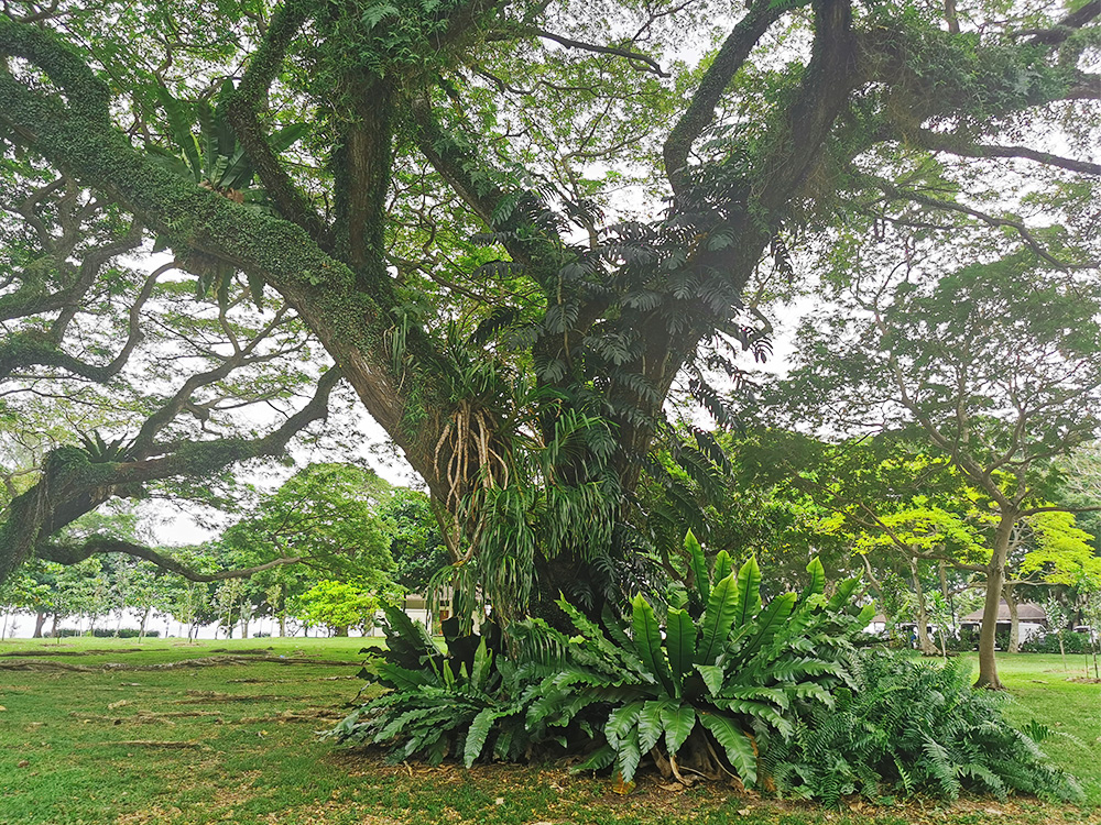 眼前这棵大树给了我正向教育,大雨树的宽大容纳,成为身边小树小草的依靠,不以为赘。反观自照,我面对人、事、物更应该常存知足感恩、善解包容之心。愿我能如大树般,凡事能站他人的角度,多为他人着想,开口动舌之前多思考,走入人群去修习。