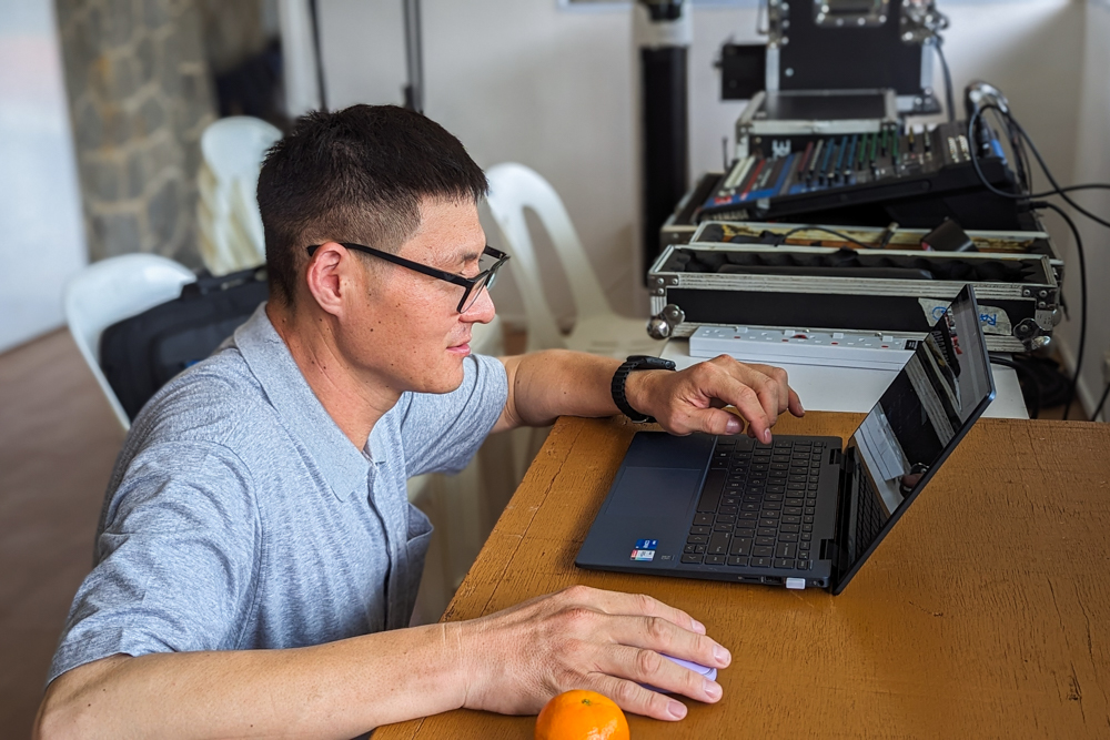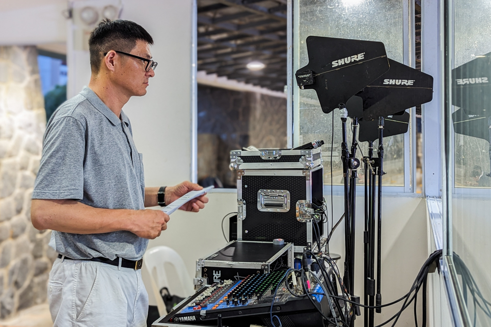 Yu Zhirong served as a group formation volunteer last year and was in charge of the sound control team this year. (Photo by Tey Inn Ping)