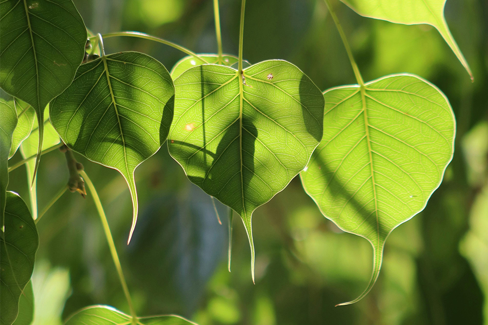 如果以菩提叶作更深入的思考,叶肉就好像我们人有形的身体,而支撑叶肉的叶脉,则像支撑我们行走在人生道路上,无形的精神与信念,关乎我们如何看待生命、为人的观念和可发挥的精神,为生命赋予意义和方向。